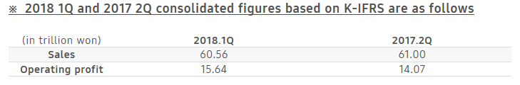 7月6日,三星预估2018年Q2季度营收在57兆韩元-59兆韩元(约合510亿美元-527亿美元),平均值58兆韩元(518亿美元)相较于上一季度环比下滑4.3%,相较于2017年同比下滑5%。营业利润在14.7兆韩元-14.9兆韩元(约合131亿美元-133亿美元),平均值14.8兆韩元(约合132亿美元)相较于上一季度环比下滑5.4%,相较于2017年同比增长5.2%。