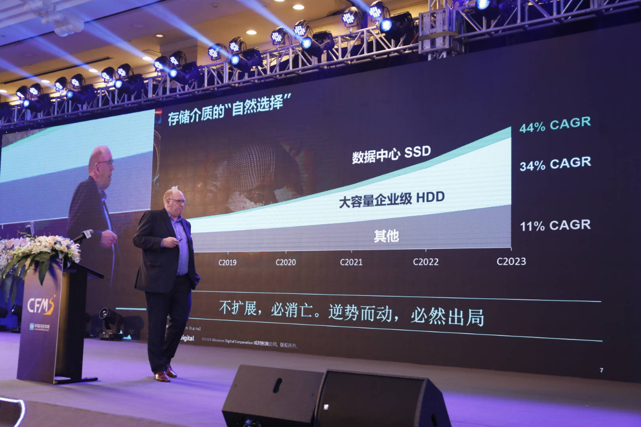 在日前的CFMS2019上,东芝和西部数据发表了精彩演讲,西部数据高级副总裁兼中国区总经理Steven Craig表示,伴随着5G推广,AI、IOT、自动驾驶技术的普及,视频应用、智慧城市等建设,未来4年内,到2023年产生的数据总量将达到103 ZB。