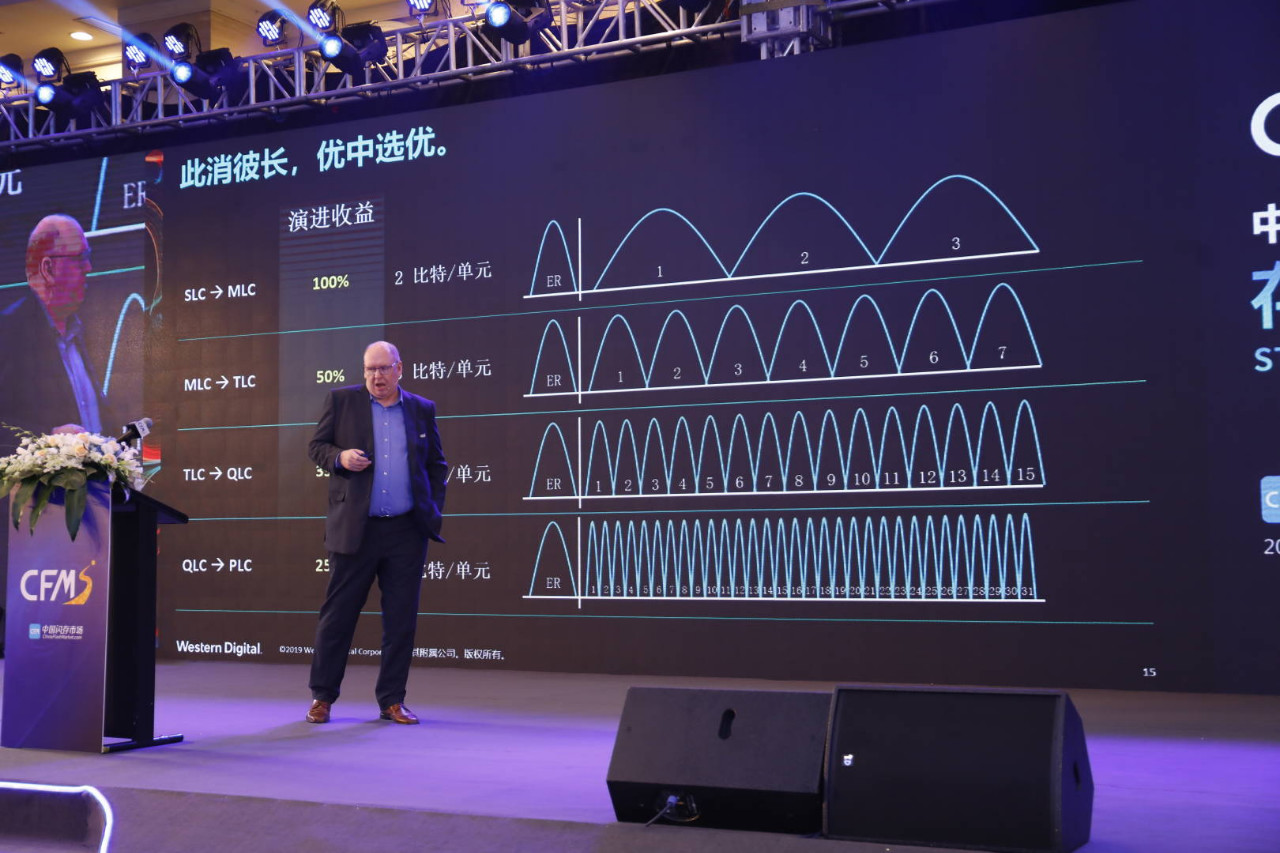 这主要依赖于3D NAND技术的发展,在CFMS2019上,三星、东芝、西部数据等展示了其3D NAND技术的发展,原厂目前正在引入96层3D NAND,并计划在此之后转向128层。于此同时,也有更多的品牌厂商在SSD中采用QLC(4Bit),而且东芝和西部数据介绍了其研究的PLC(5-bit-per-cell, 32-level cell)技术,这些先进的技术都将持续降低SSD单位成本。