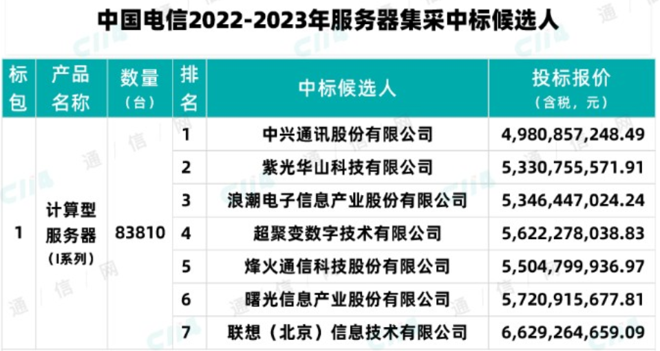据媒体报道,中国电信2022-2023年服务器集中采购项目评标委员会按照招标文件载明的评标方法和标准已完成对各投标人递交的投标文件的评审。