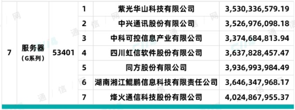 根据评审结果,共有12家厂商入围本次集采。其中,中兴通讯和紫光华三入围全部7个标包,烽火入围6个标包,浪潮入围5个标包,超聚变和曙光信息入围4个标包,航天信息和中科可控信息入围2个标包,联想、同方股份、四川虹信、湖南湘江鲲鹏信息入围1个标包。