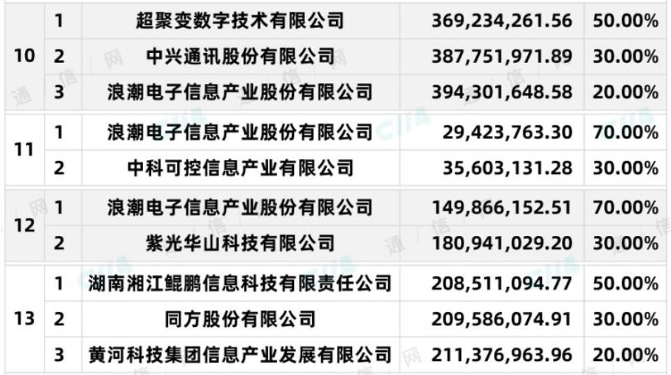 据悉,中国移动2021-2022年PC服务器第1批集采总计采购约163692台PC服务器,采购需求满足期约为半年。项目共划分成16个标包。截止目前已公示了13个标包的中标结果,仅剩下标包4、5、14的中标结果尚未公示。具体中标详情如下图: