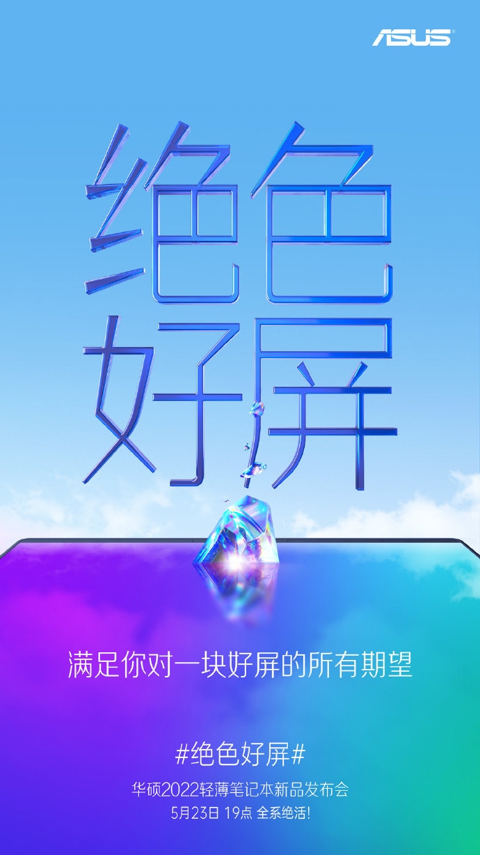 华硕发布2022年轻薄笔记本新品海报,宣布华硕2022轻薄笔记本新品发布会将于5月23日19点举行。