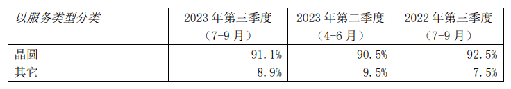 按服务类型划分,晶圆收入占总营收91.1%,其他收入占总营收8.9%。