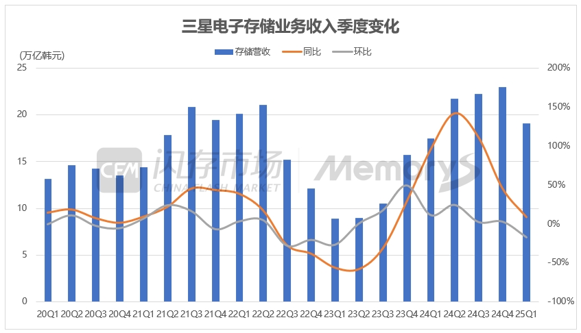 三星电子Q1存储营收为19.1万亿韩元(约合133.8亿美元),环比减少17%,同比增长9%;存储业务所在的DS部门Q1经营利润为1.1万亿韩元(约合7.7亿美元),环比减少62%,同比减少42%。