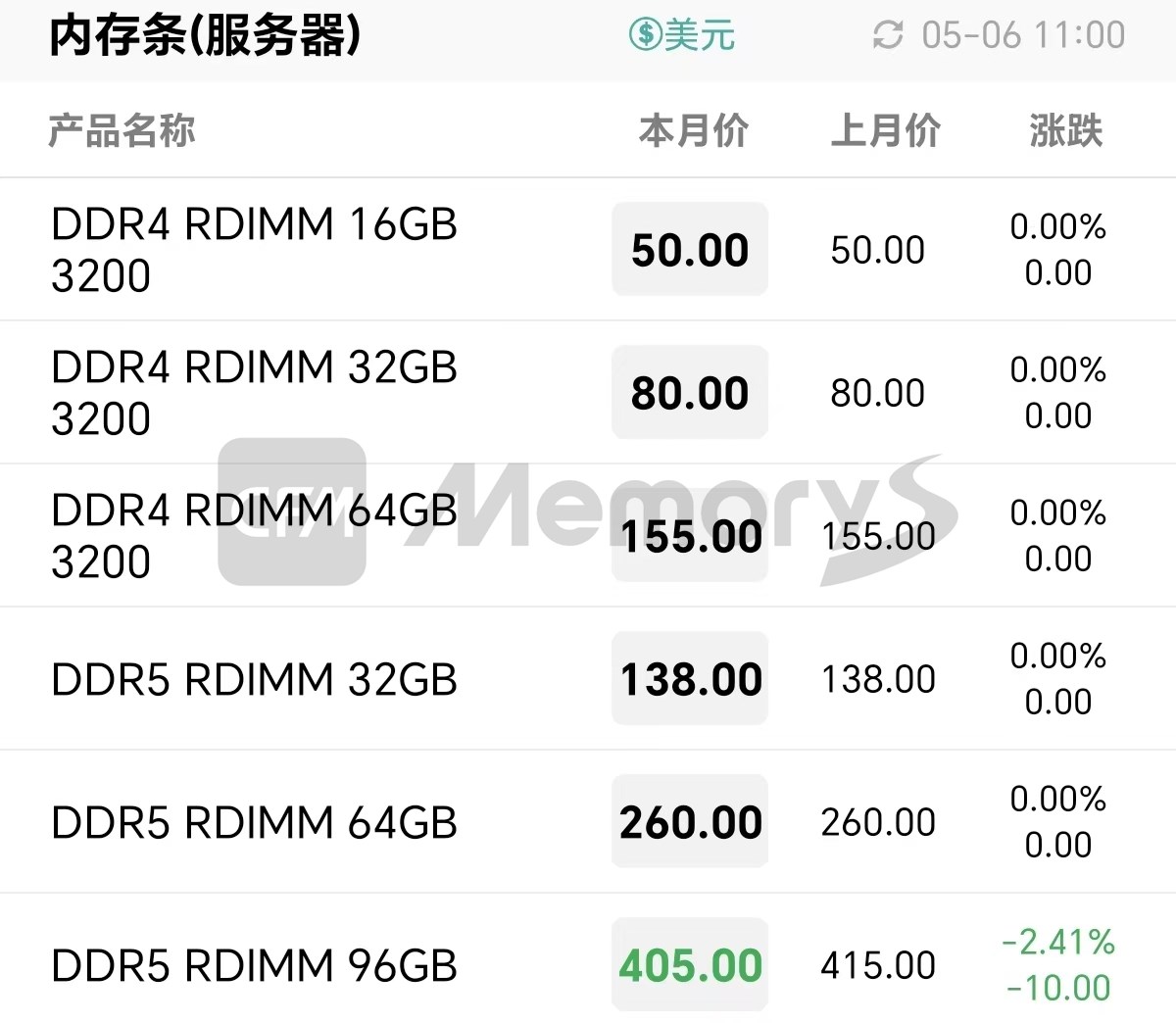 随着去年三季度原厂逐渐减产LPDDR4X,近段时间来LPDDR4X供应持续紧缺;需求端方面,部分终端客户担忧未来供应不明朗而陆续备货,在需求相对有力支撑下令本周部分低容量LPDDR4X价格拉涨,其他价格不变。