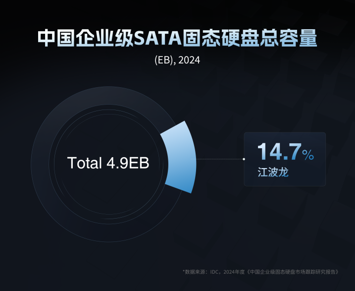 2025年一季度,江波龙企业级存储产品组合(eSSD和RDIMM)取得显著突破,营收同比增长超200%。据IDC调研报告,2024年中国企业级SATA SSD总容量排名中,江波龙位列第三,在国产品牌中位列第一。这一成绩的背后,是公司在中高端存储领域技术创新和市场洞察上的双重突破。