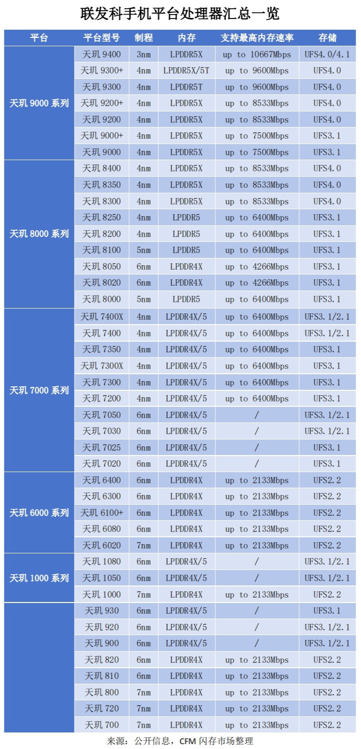 · 价格高昂+平台生态限制令中端机型向LPDDR5X升级缓慢,中低端手机终端多数仍采用LPDDR4X方案