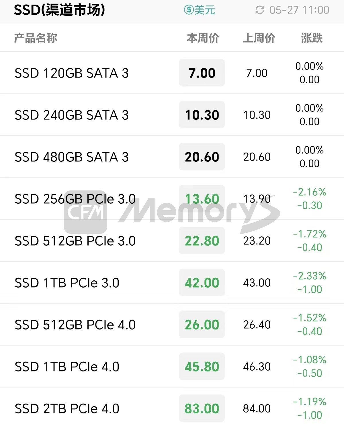 行业市场SSD最新报价