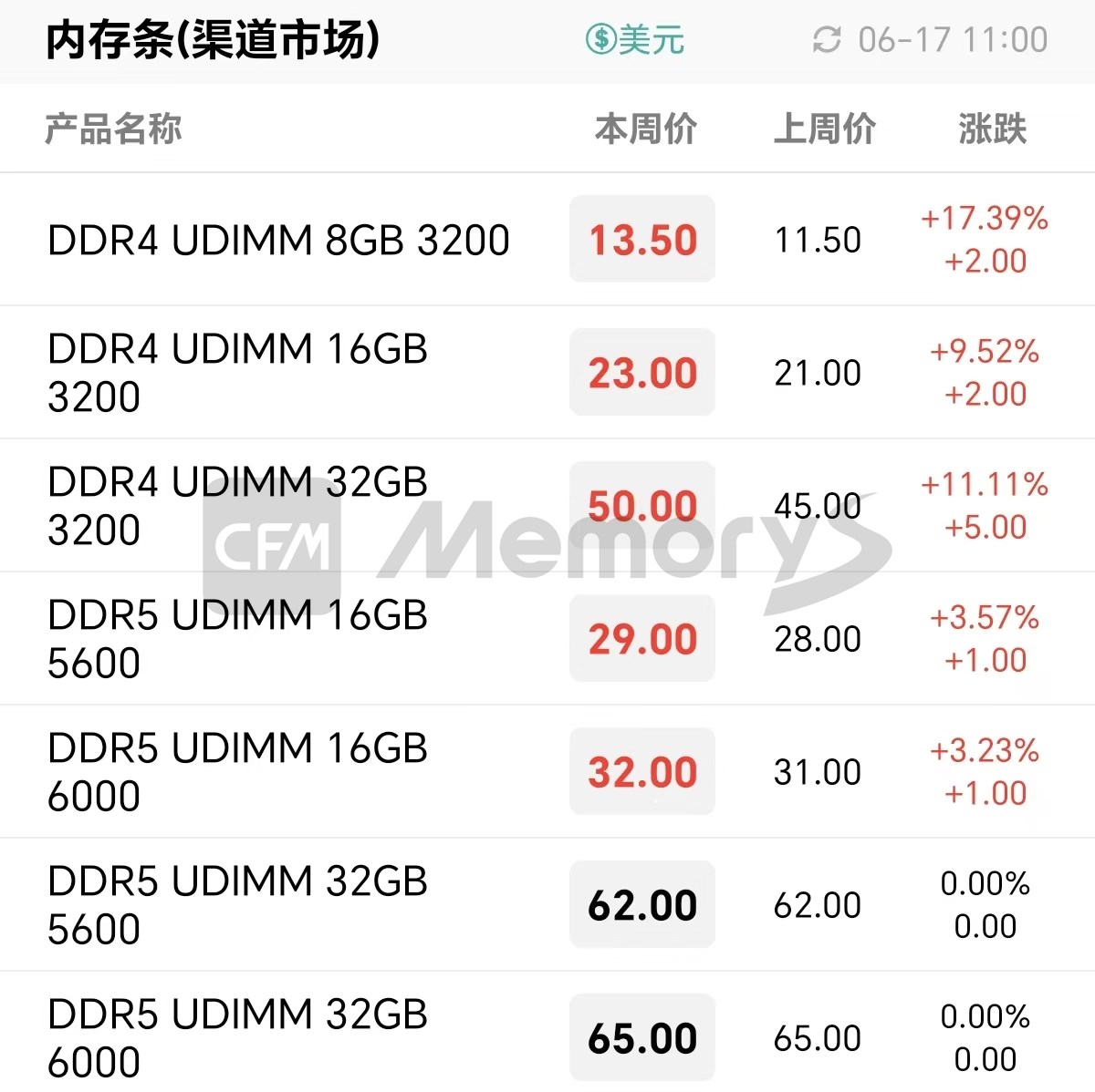 近段时间来,渠道DDR4资源价格全线大幅抬高,多数渠道存储厂商继续刷新DDR4 UDIMM报价,渠道贸易炒作行为热情高涨,渠道厂商普遍“捂盘惜售”,控制出货节奏;反观需求端虽有少量询单,但因DDR4内存条价格高耸令市场实际成交乏力,仅少数有实际需求的客户达成小量交易;若未来价格仍持续大幅度上涨走势,将使得原本销售不济的渠道C端客户更加雪上加霜。