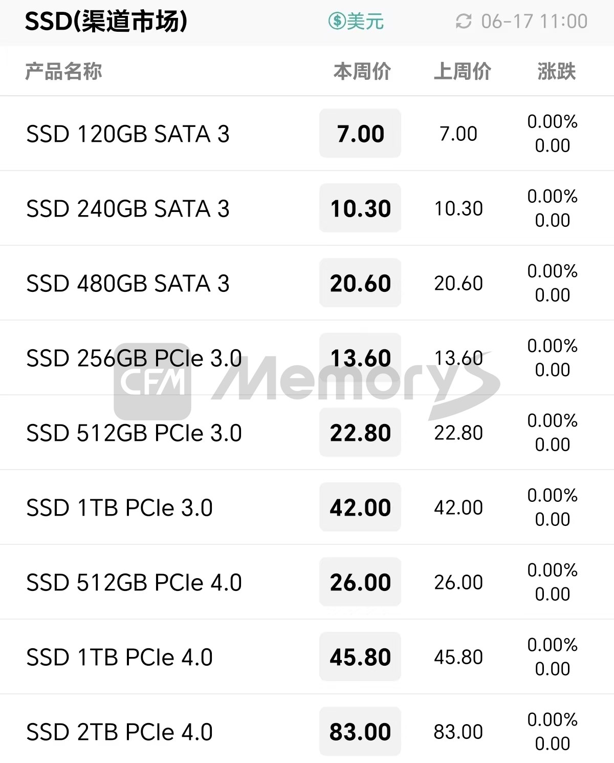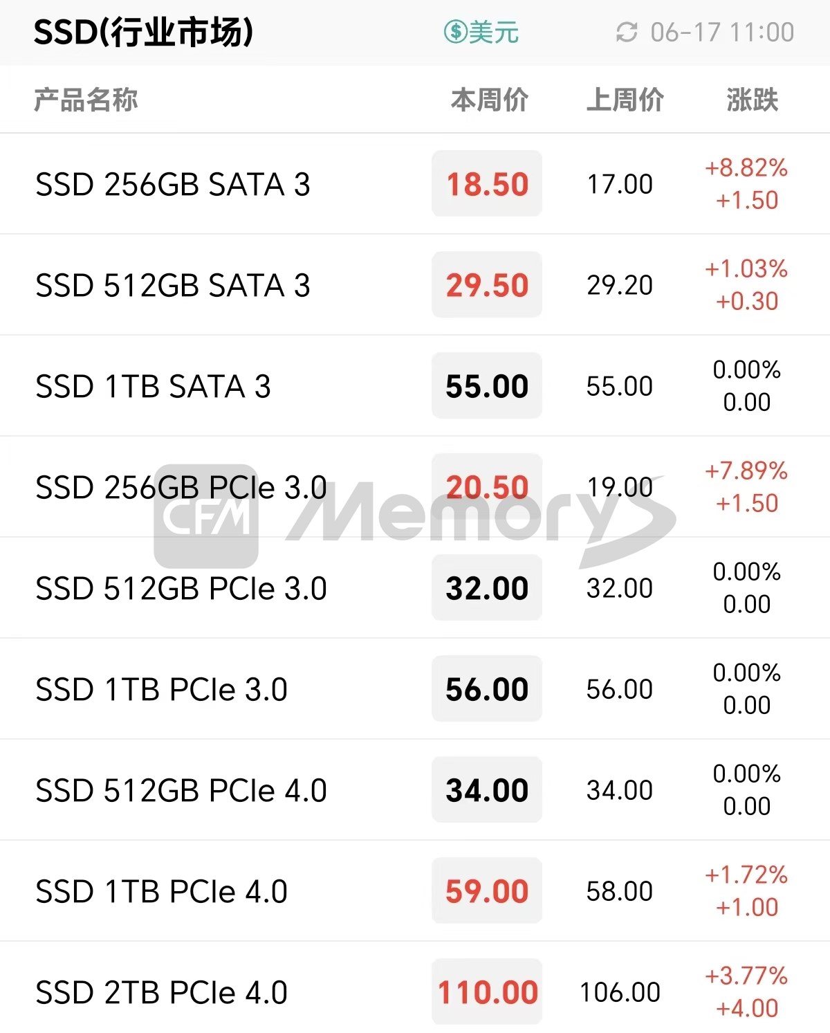 近期渠道资源从高端到底部低端料号价格自上而下全线走高,渠道存储厂商仍坚定强势拉涨DDR4 UDIMM报价,不过,涨势如此迅猛的渠道DDR4内存条已令部分渠道客户望而却步,市场整体成交乏力;个别品牌厂商近乎疯狂地将部分PC DDR4产品官价火箭式飙升超五成的涨幅。这种非理性、无节制的暴力拉涨价格行为令市场混乱不堪,也为现货市场敲响了警钟,维护健康、合理的价格环境尤为重要。另外,受部分供应端资源释放涨价信号刺激,行业厂商尝试调涨SSD报价并力促客户谈定;嵌入式市场则整体暂时维持不变。