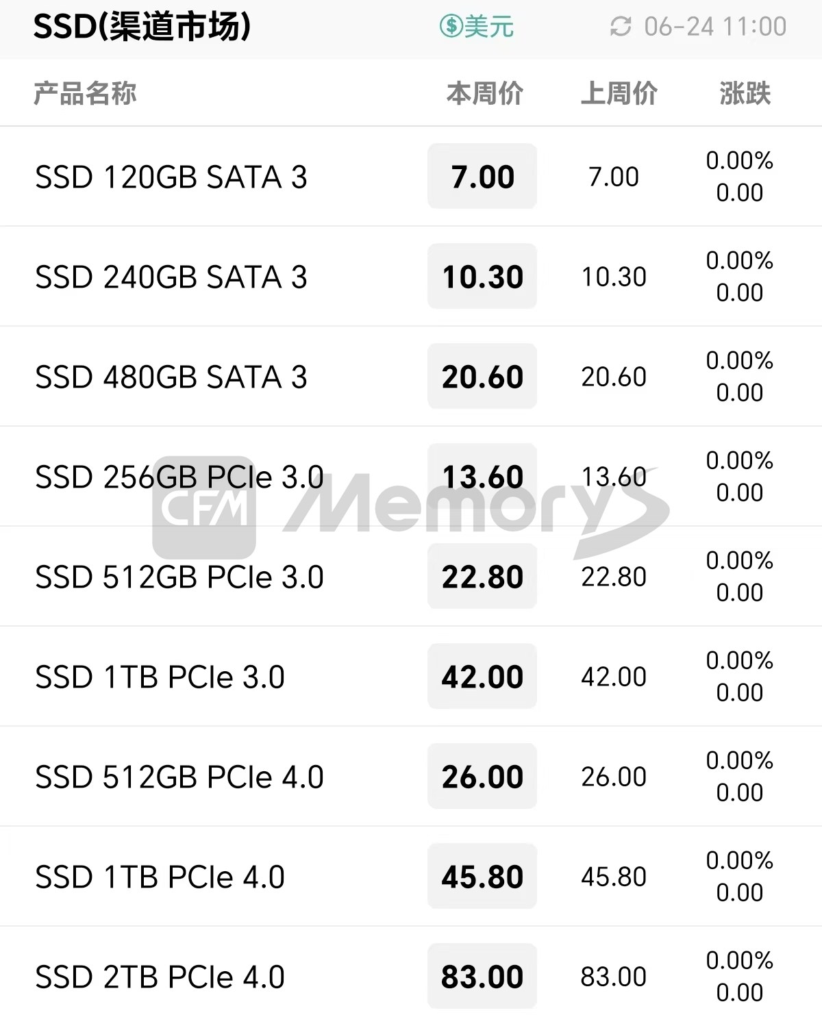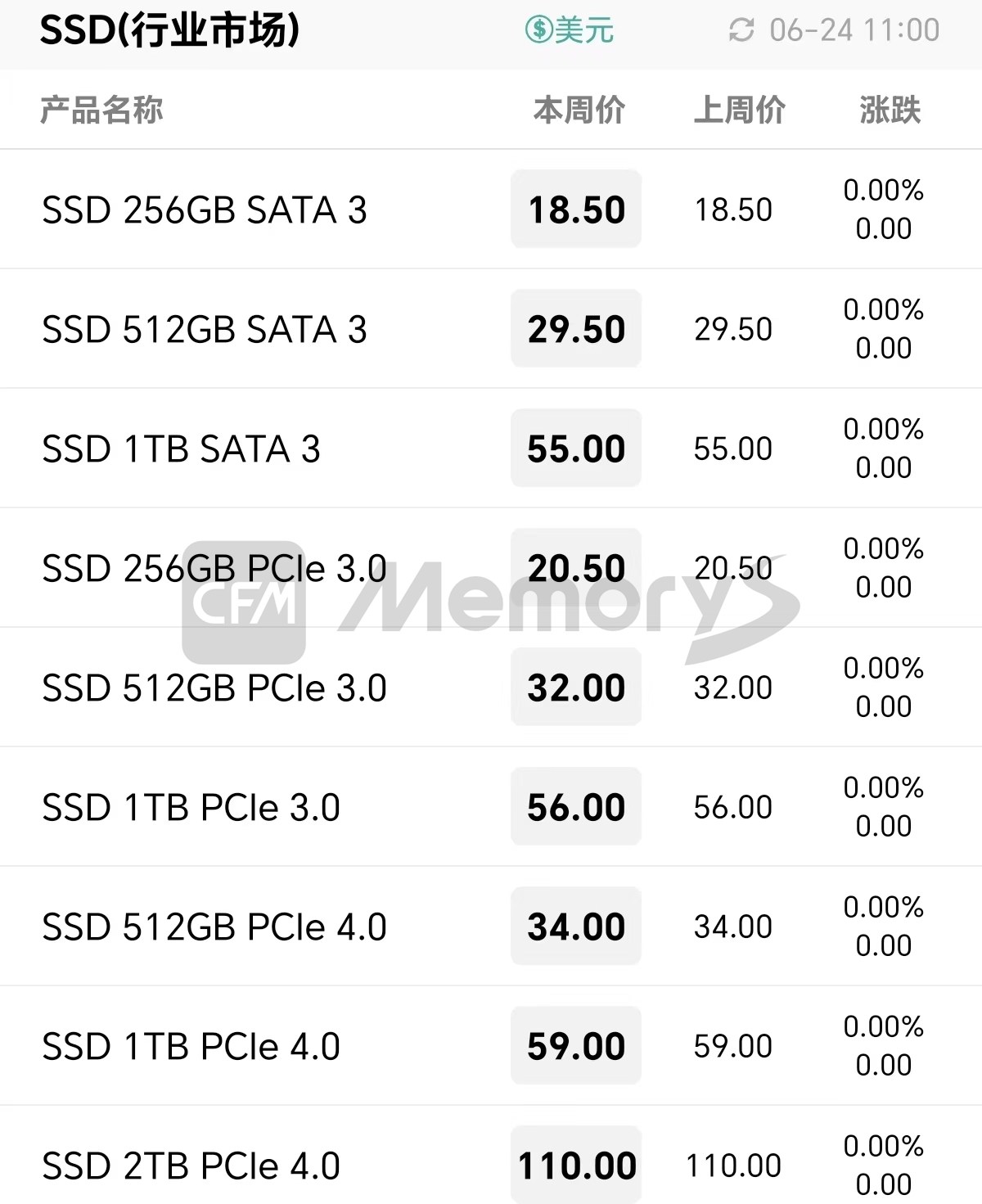 行业市场SSD最新报价