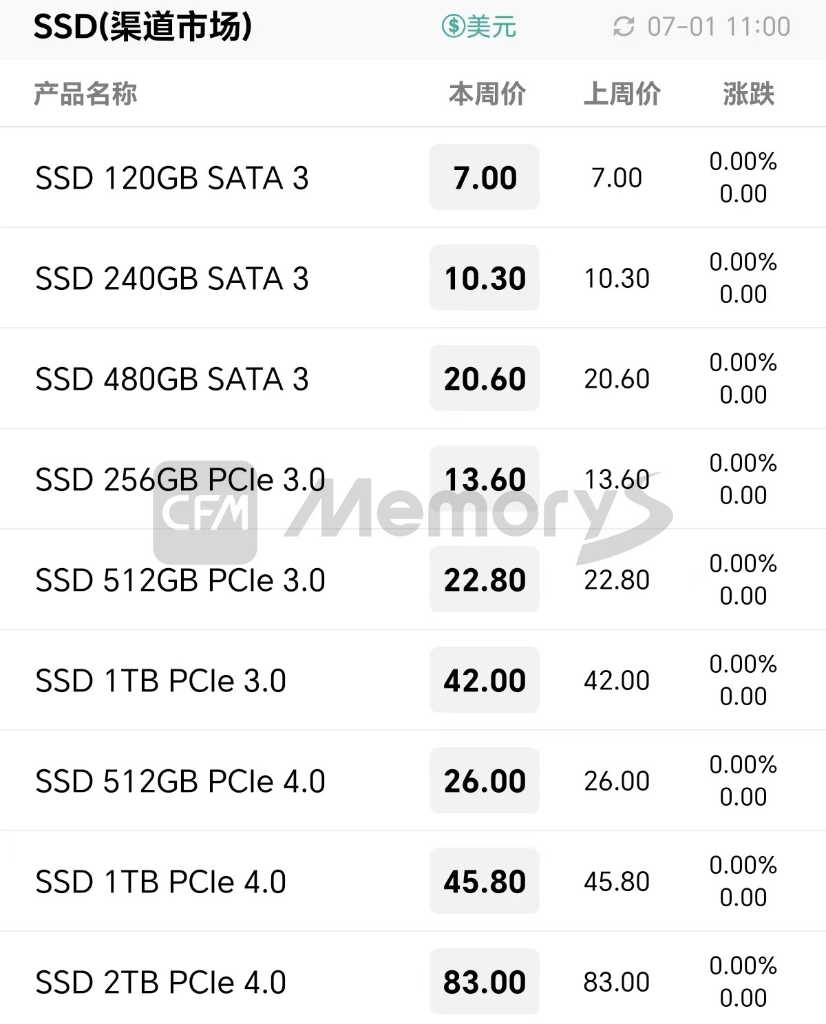渠道市场SSD最新报价
