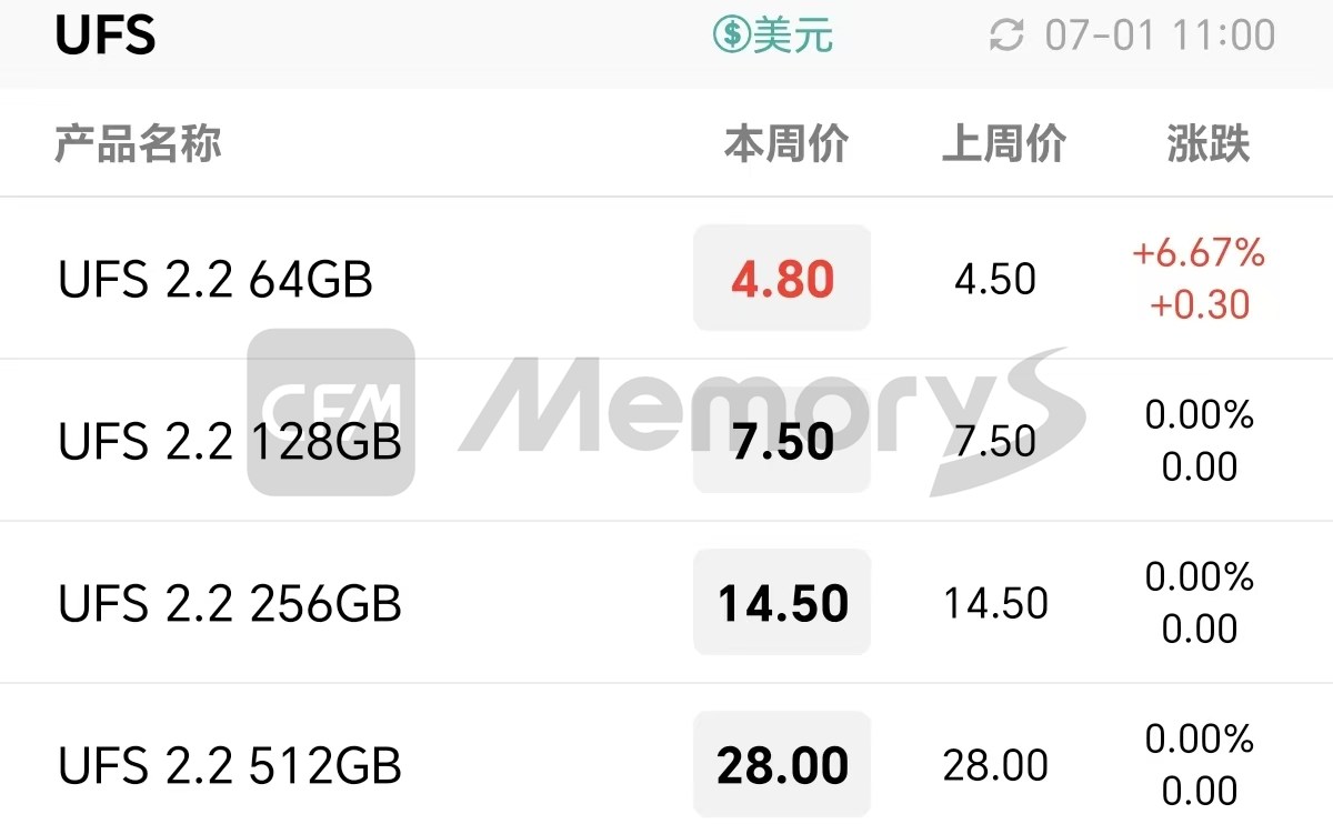 UFS最新报价