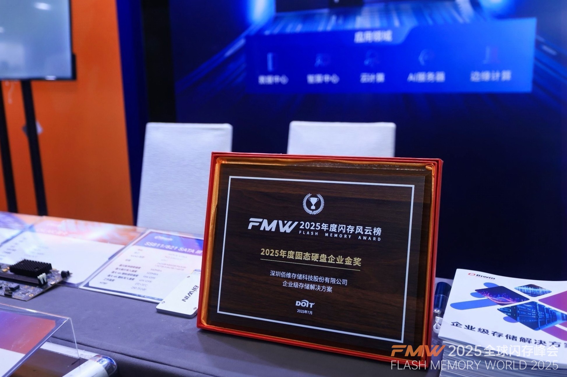 近日,佰维存储亮相由DOIT举办的全球闪存峰会,展示了其企业级存储全矩阵,并荣获了“2025年度固态硬盘企业金奖”,进一步彰显了公司在企业级存储领域的技术实力与产品力。