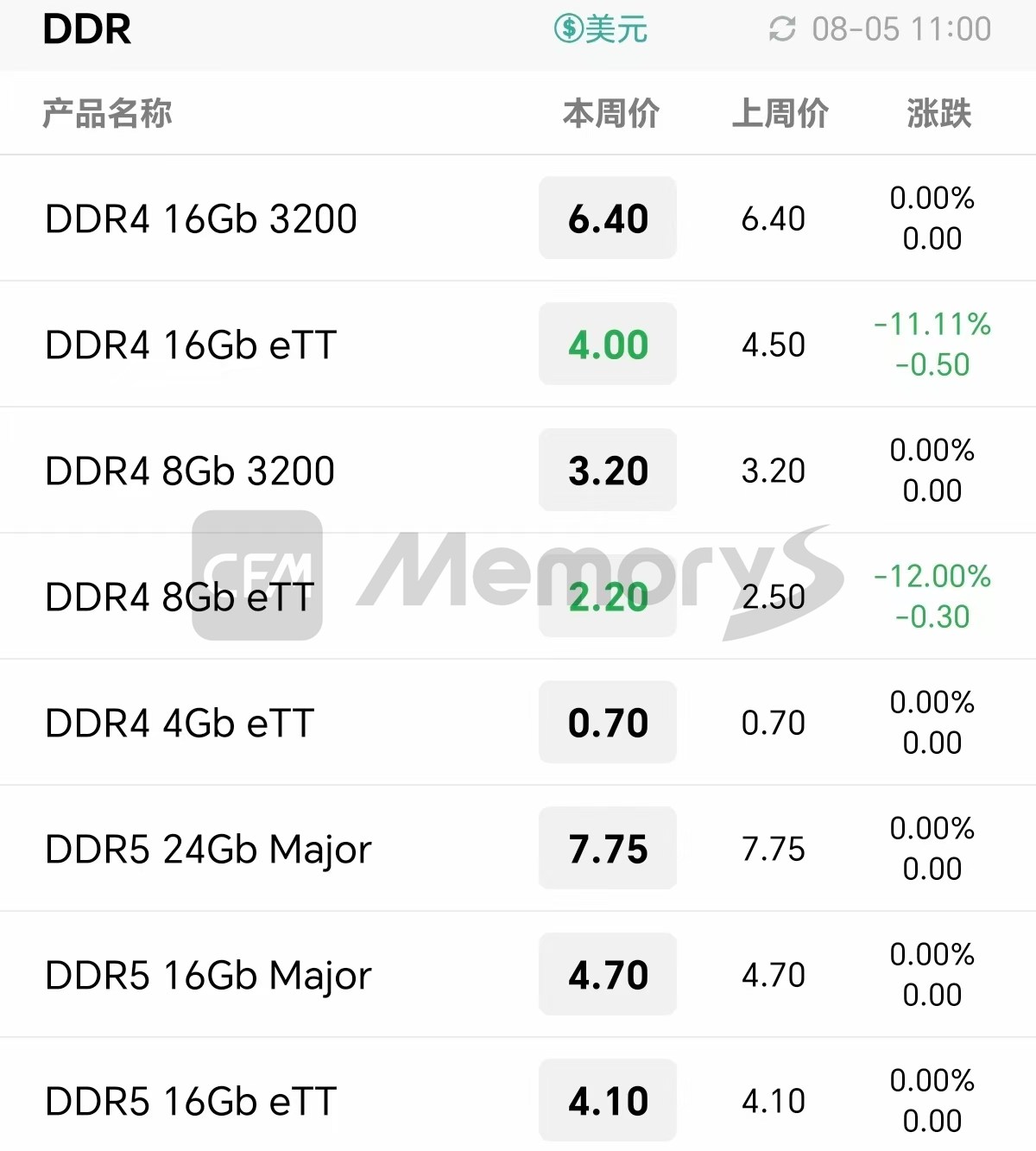 行业市场内存条最新报价
