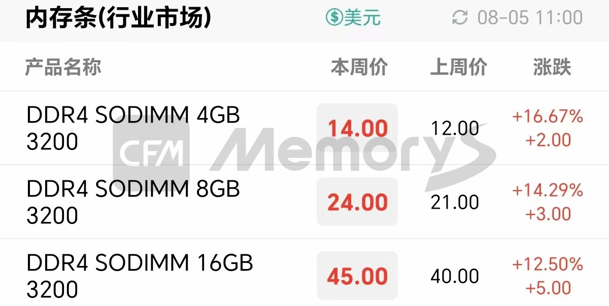 行业市场方面,存储厂商SSD供应相对充足,行业客户多以消化库存为主,备货积极性不高。不过因临近8月底开学季,部分PC厂商开始有询单动作,但部分客户期望能以更低的价格成交,而成本压力下存储厂商维持挺价态度,促成实际成交难度较大。同时基板交期延迟也间接导致行业SSD成品交付较正常周期有所延长。另外,主流DDR4原装颗粒仍处于持续供应紧缺状态,存储厂商调涨相应的行业DDR4内存条产品价格。