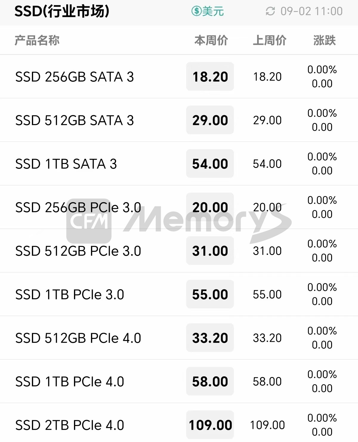 行业市场SSD最新报价