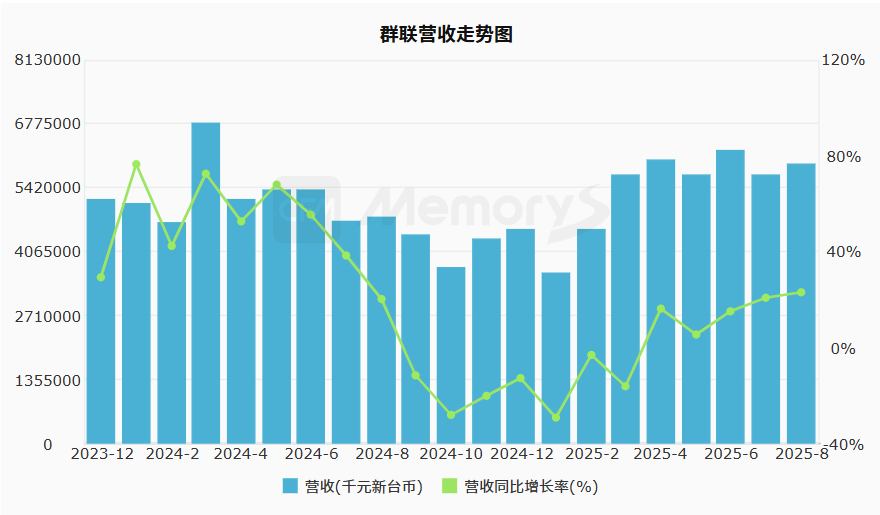 群联电子8月合并营收59.34亿元(新台币,下同),环比增长4%、同比增长23%,创历史同期新高;累计前8月营收达433.5亿元、同比增长3.4%,同样刷新同期纪录。