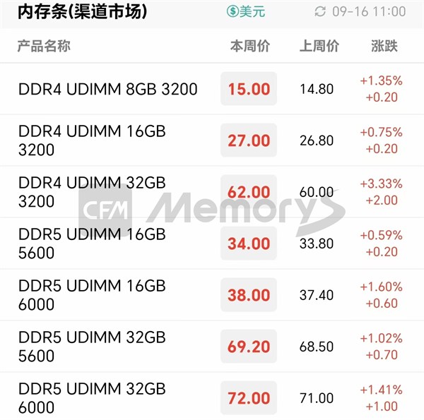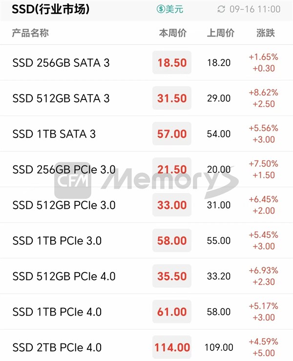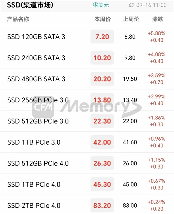 原厂涨价消息漫天传播下,渠道市场烘托出的涨价气氛分外浓重,近期客户询单明显增加。不过,前期在业绩压力下加速变现,部分存储厂商甚至以价换量争取成交,现货库存持续消耗的同时部分NAND资源供应有限,相应的渠道SSD成品已出现缺货现象。基于此,渠道厂商纷纷全面调涨SSD价格。DRAM方面,受制于严格的监管环境,DDR4资源市场流通受阻下供应较少且价格上涨,渠道厂商调涨相应的DDR4内存条价格,DDR5资源供应也较为有限且价格继续滚动上扬,渠道DDR5内存条维持上涨态势。