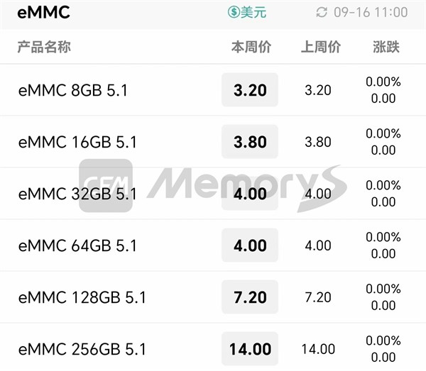 近日虽部分原厂针对包括LPDDR4X、LPDDR5X等在内的DRAM产品暂停报价,市场更是传出原厂将大幅上调相关产品价格,不过最终还需待原厂供应和定价策略落地。目前尚未对嵌入式市场带来实际影响,多数存储品牌厂商及其下游客户均处于观望状态。因此,本周嵌入式eMMC、UFS及LPDDR4X价格维持不变。