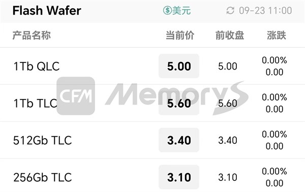 9月以来,继闪迪公开宣布涨价之后,美光、三星等存储原厂涨价传闻扑面而来,带动现货市场NAND资源“涨声一片”。据CFM闪存市场数据显示,9月初至今,NAND Flash wafer价格普遍呈个位数涨幅,其中,512Gb TLC NAND价格累计已涨近10%。