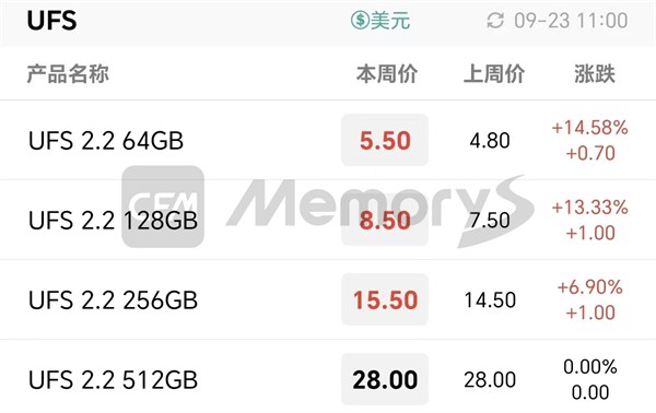 UFS最新报价