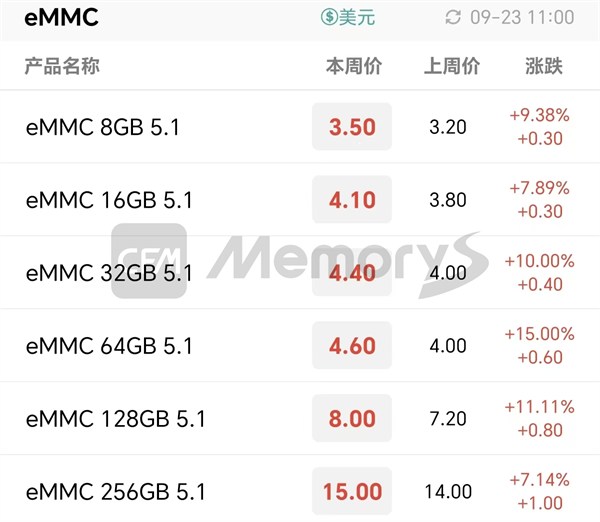 eMMC最新报价