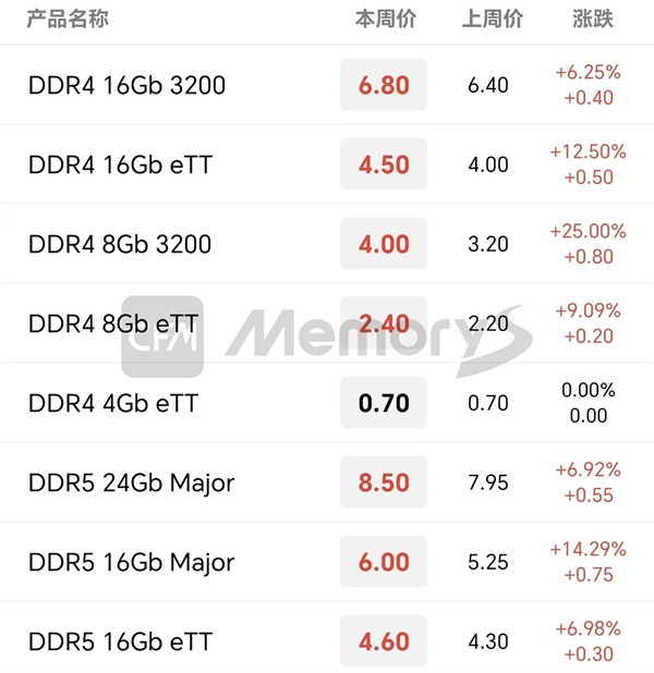 行业市场内存条最新报价