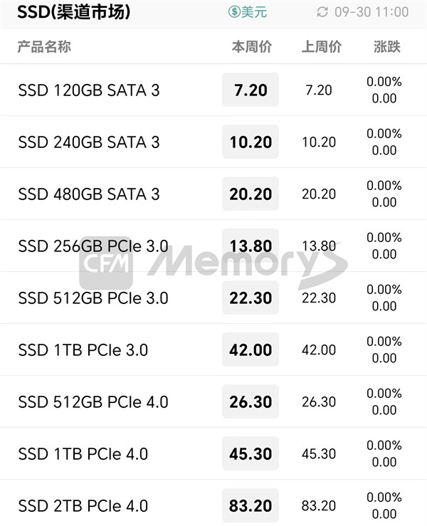 行业市场SSD最新报价