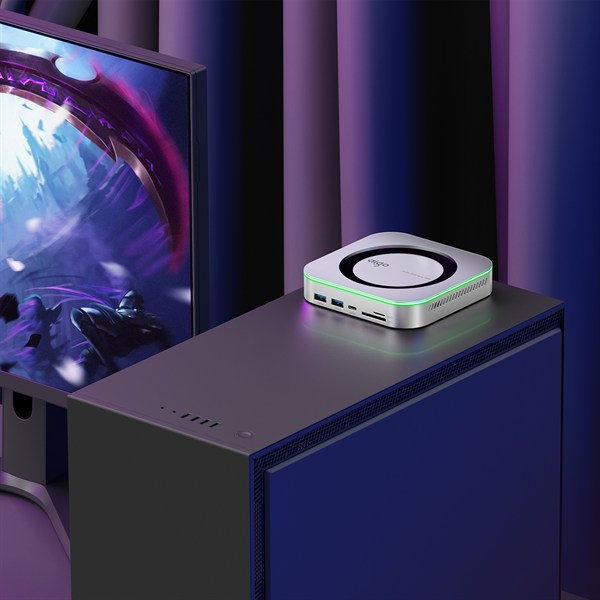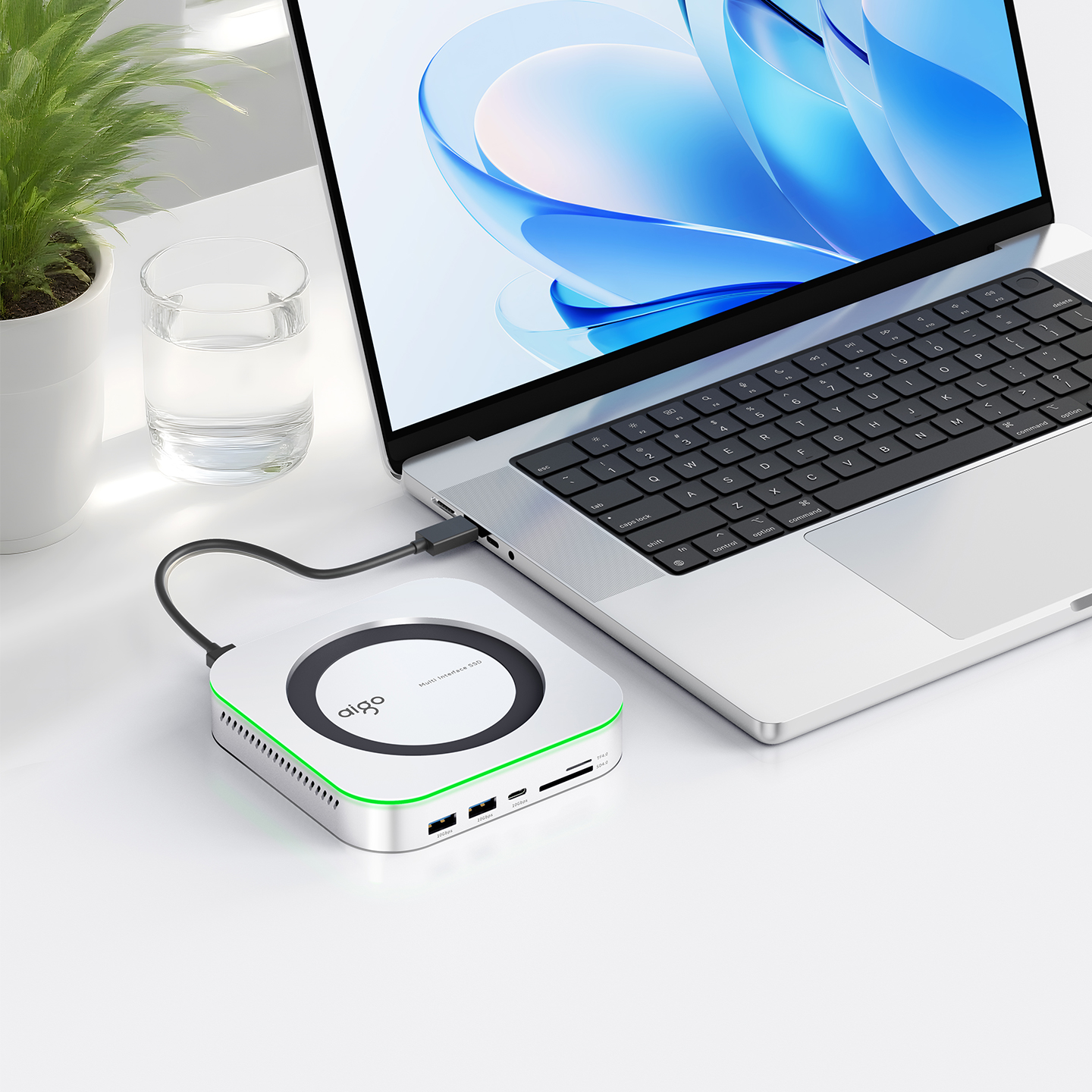 H2同样能够为电竞玩家和科技爱好者提供强大的支持 。在电竞桌面场景中,H2的接口组合(USB-A + USB-C + HDMI)能够轻松连接游戏手柄、VR眼镜,并实现分屏显示,为玩家提供更丰富的游戏体验 。同时,H2内置的瞬冷散热系统,能够有效降低Mac mini的运行温度(经aigo实验室测试,可降低36%),即使在高负载的游戏状态下,也能确保设备的稳定运行和流畅表现,让玩家能够全身心投入到游戏世界中 。