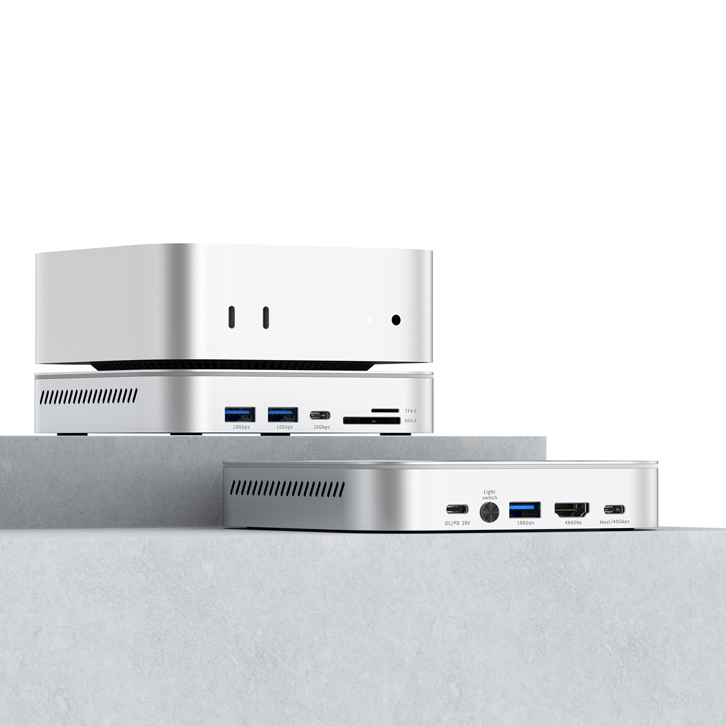 H2的问世,精准洞察了Mac mini用户在面临原厂存储空间不足和接口扩展能力不足时的核心痛点。长期以来,用户被迫花费巨额成本进行苹果原厂扩容,但接口数量依然受限;或者采用体验不佳的第三方扩展坞方案,导致线缆凌乱、散热问题,更破坏了Mac mini所倡导的极简桌面美学 。