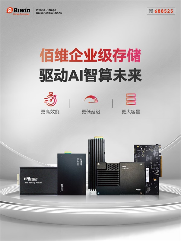 近年来,佰维存储持续加码企业级存储战略布局,聚焦AI服务器、云计算、智算中心、边缘计算等高增长赛道,已构建覆盖PCIe 4.0/5.0 NVMe SSD、SATA SSD、DDR5 RDIMM服务器内存及CXL 2.0内存扩展模块的全栈产品体系。系列产品凭借高可靠性、高性能和超低延迟等优势,已通过中国移动AVAP测试与20余家CPU平台及OEM厂商的互认证,并获得多家头部互联网厂商及AI服务器厂商的核心供应商资质。