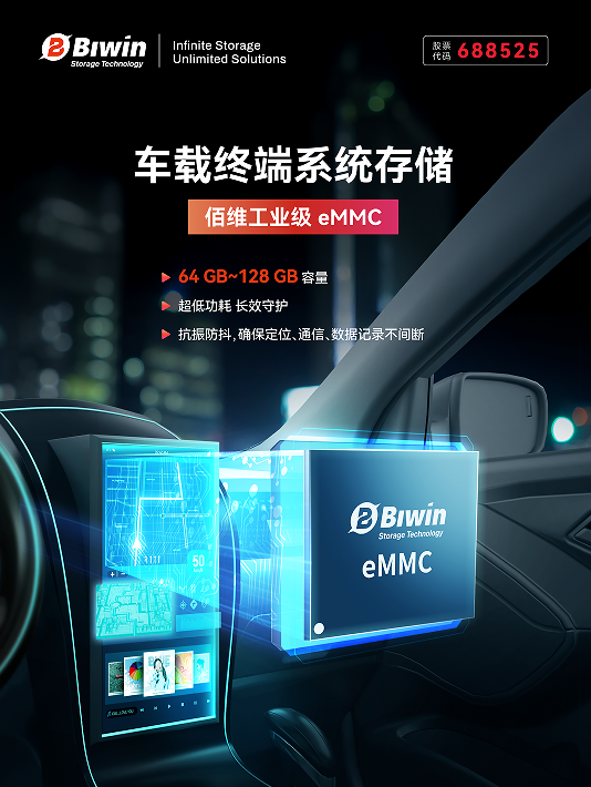 车载终端集成了视频监控、定位导航、远程通信、系统运行等多项功能模块,佰维特存基于不同应用场景和性能要求,提供涵盖SSD、eMMC、SD/microSD卡、DDR/LPDDR在内的存储产品矩阵,实现从系统存储到系统缓存再到视频数据记录的全域存储覆盖。