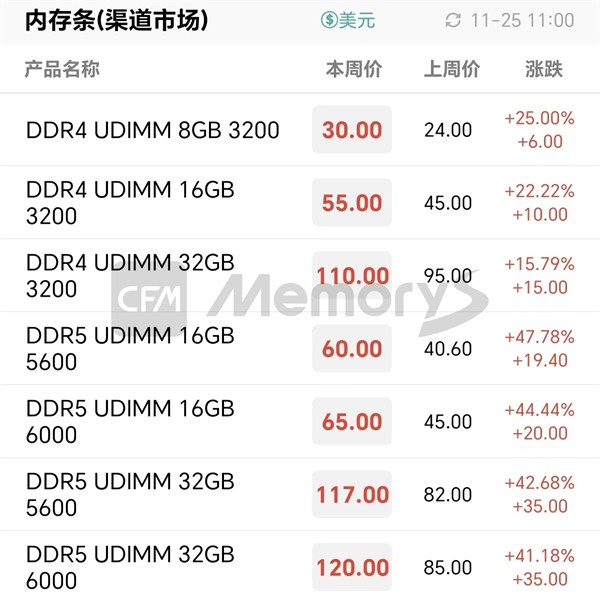 回顾11月,存储现货行情整体维持强势上涨的态势,即便成品端价格高昂,但库存水位偏低的客户急需回补库存,已逐步接受新协定价格。新的需求不断接受新的报价,为存储厂商提供了更强的涨价信心,进而推动相关成品价格不断突破前高。