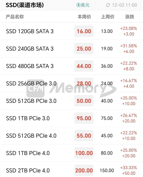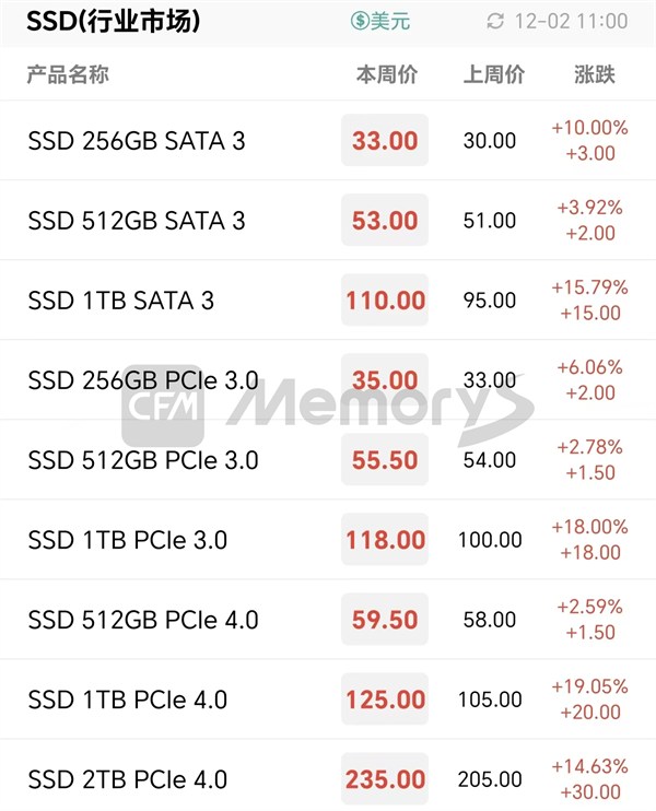 行业市场SSD最新报价