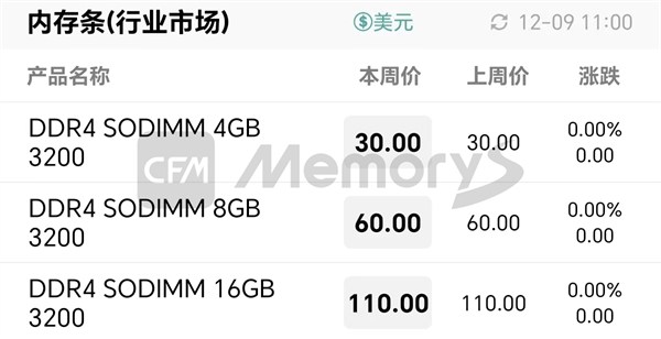 行业市场内存条最新报价