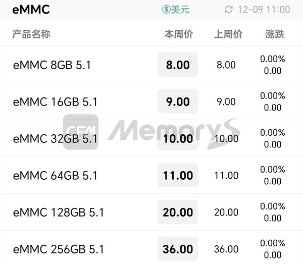 eMMC最新报价