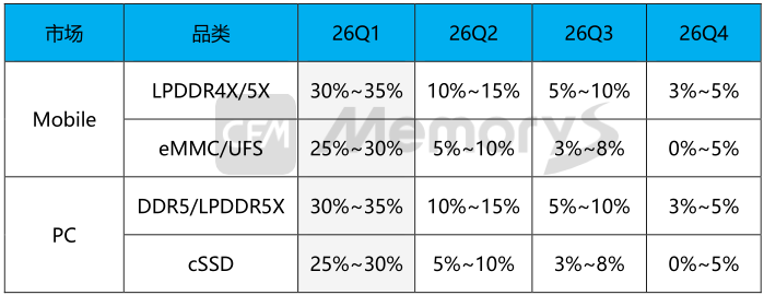 此番小米逆向调涨在售产品,表明存储大幅涨价带来的成本压力已切切实实传递至消费末端。但据CFM闪存市场了解,原厂产能优先保障AI服务器需求,而导致mobile、PC等消费类市场供应受到明显挤占,明年上半年供应满足率远不如往年同期水平。