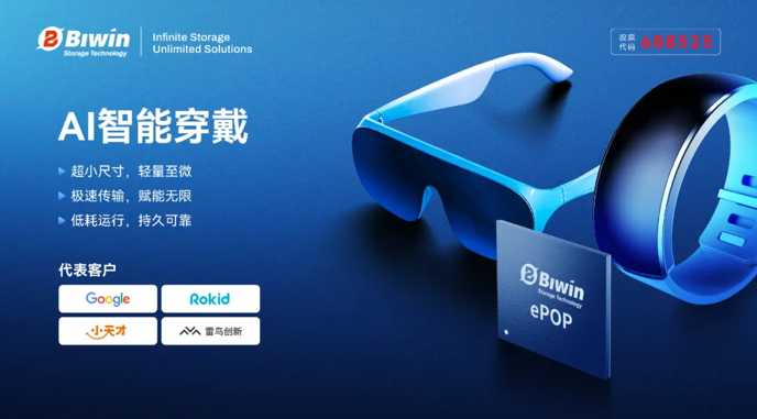 随着AI眼镜、智能手表等穿戴设备持续向极致轻薄、持久续航与多模态AI应用进化,存储芯片迎来尺寸更小、功耗更低、性能更强的全面挑战。佰维ePOP5x以超小体积、高效能与高可靠优势,为移动智能终端打造“小而强”存储方案,让轻薄设备也能释放澎湃AI能力!