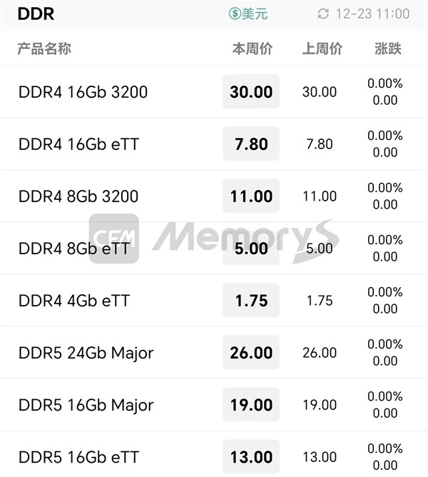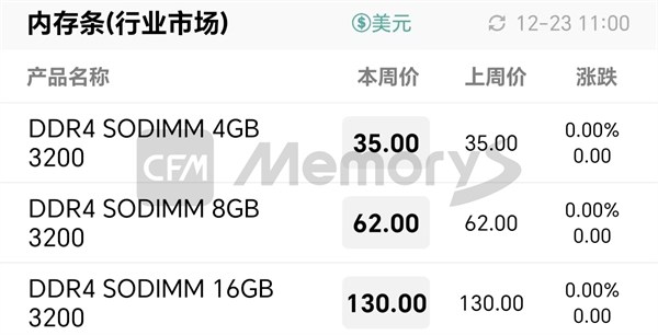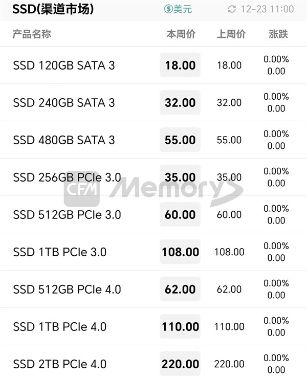 尽管当前渠道资源价格仍在上涨,但前期积攒了过高涨幅的存储成品已然抑制了渠道端市场需求,相应的,疲软的需求也会给成品端价格继续冲高带来压力。近期,库存水位低的渠道客户为明年一季度做备货准备而释放少量采购需求,个别渠道厂商小幅让利以促成交。整体来看,渠道SSD和内存条价格稳定、高位坚挺。