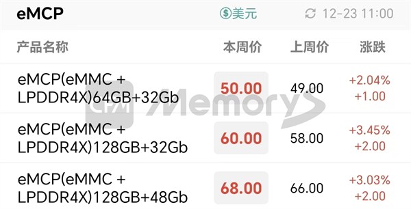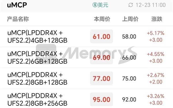近期1Tb TLC/QLC Wafer ASP已超$0.11/GB,512Gb TLC Wafer ASP更是涨至近$0.16/GB,存储厂商不得不接受高价资源的情况下,相应的嵌入式eMMC、UFS产品跟随成本上涨而较大幅度调涨,集成式eMCP、uMCP跟涨;LPDDR4X产品价格暂时不变。