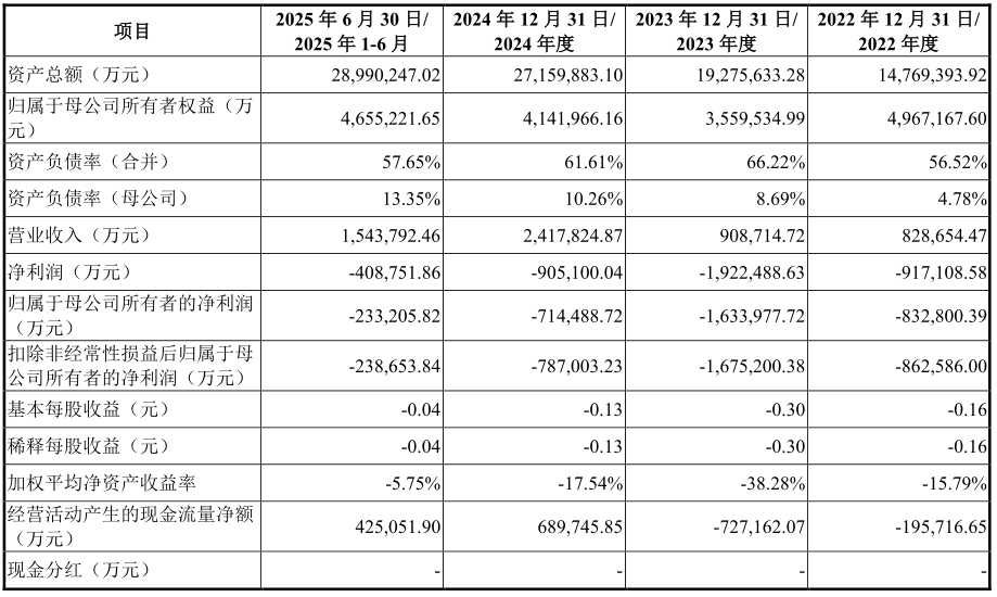 招股书显示,长鑫存储2025年1-6月营收为154.38亿元,净利润-40.88亿元;2024年营收241.78亿元,净利润-90.51亿元;2023年营收90.87亿元,净利润-192.25亿元;2022年营收82.87亿元,净利润-91.71亿元。