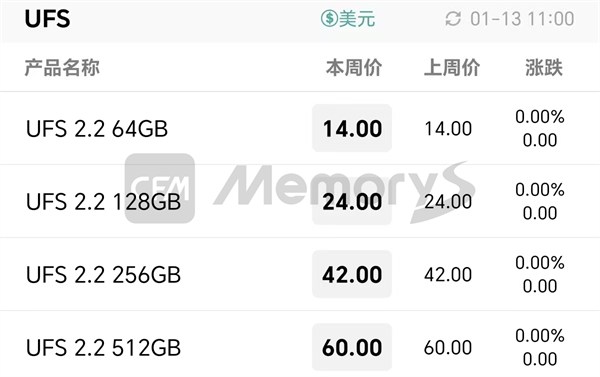 UFS最新报价