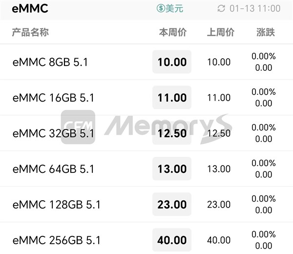 eMMC最新报价