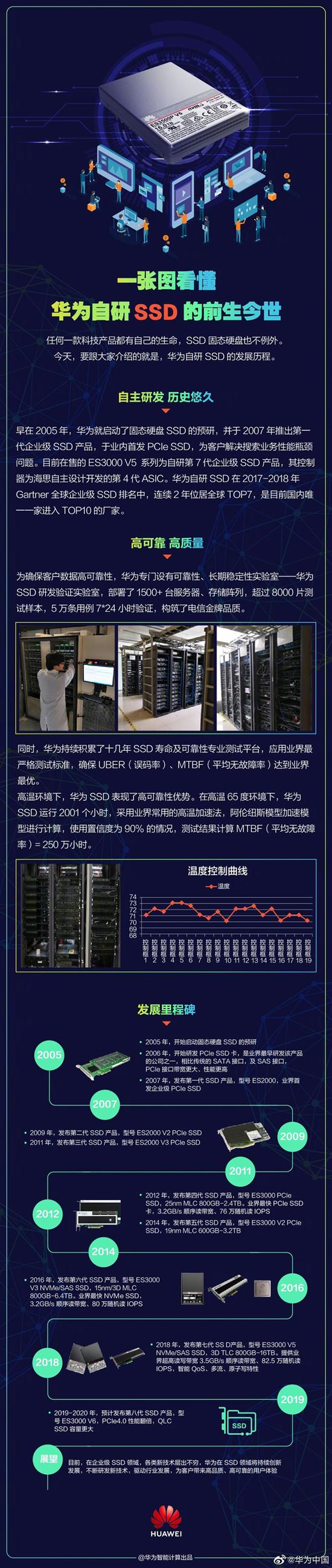 华为中国官微详细回顾了华为自研SSD的历史变革,以及超高的质量和可靠性。