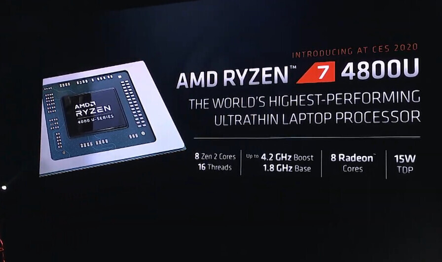 AMD宣布推出Ryzen 4000系列移动处理器4800U和4800H,旨在与英特尔最快的10代“ Ice Lake”和“ Comet Lake”移动处理器产品线竞争。新推出的两款处理器核心是7nm“Renoir”硅,它使CPU核心数量比上一代“Picasso”增加了一倍,并且将IPC(单线程性能)提高了两位数。