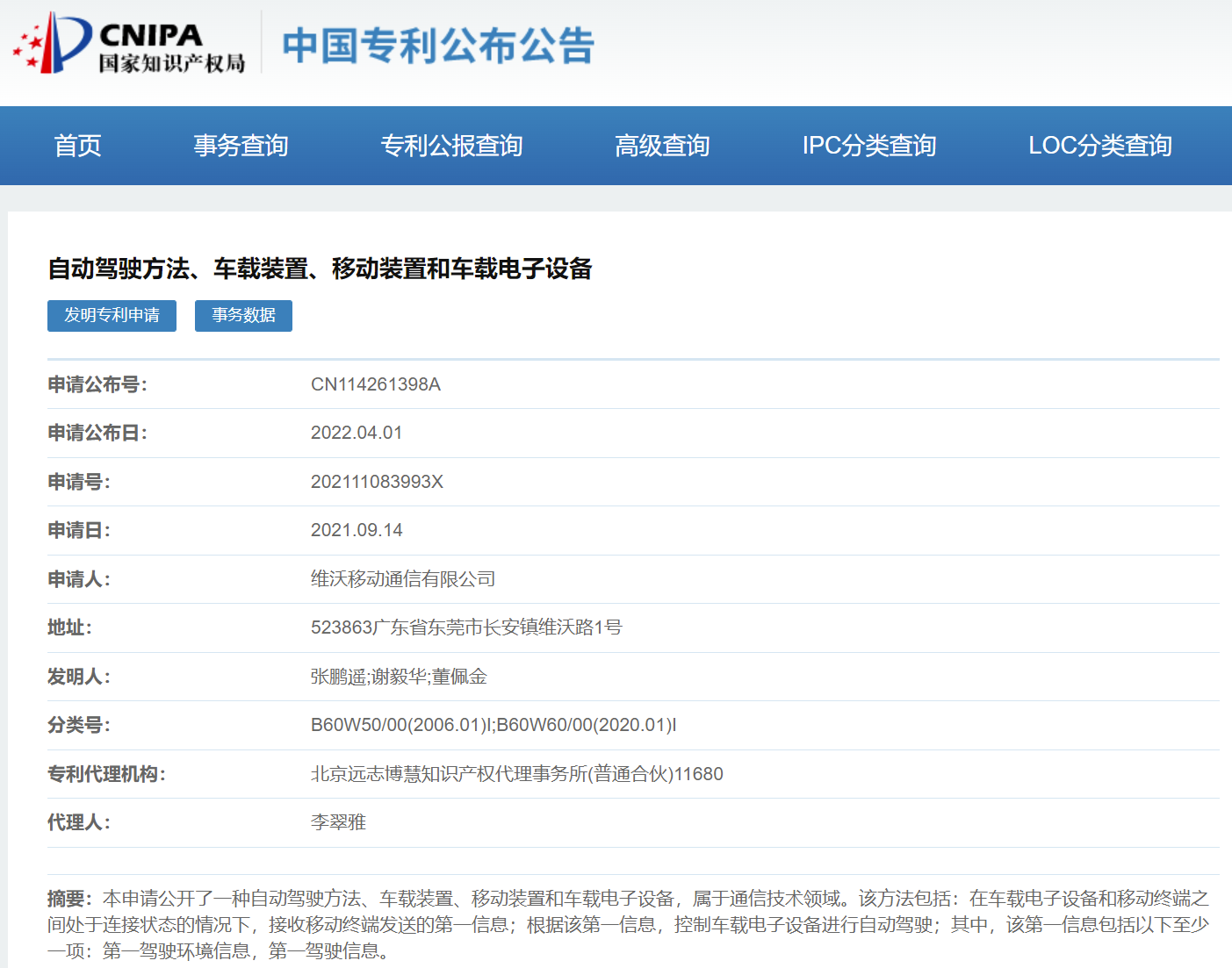 vivo专利摘要显示,该申请公开了一种自动驾驶方法、车载装置、移动装置和车载电子设备,属于通信技术领域。该方法包括: